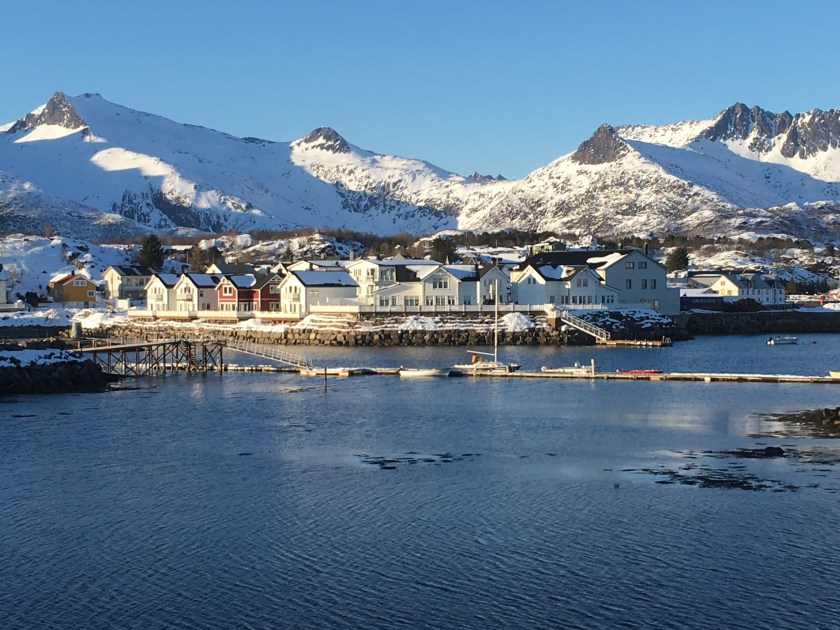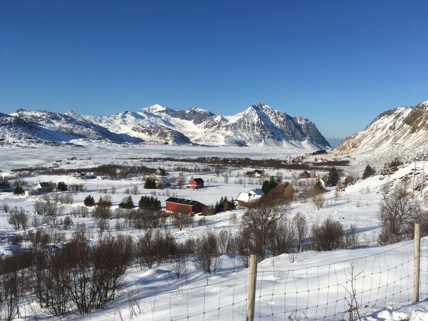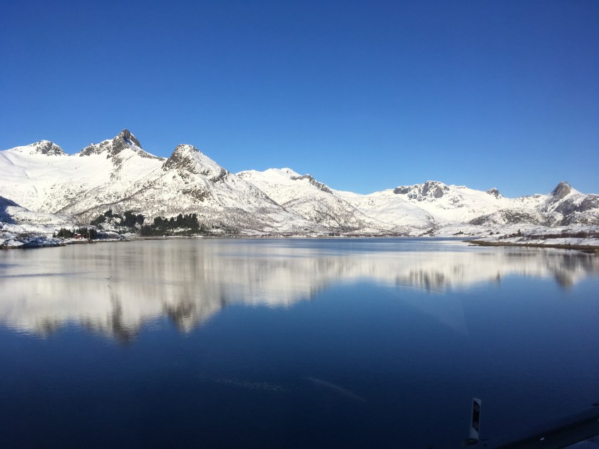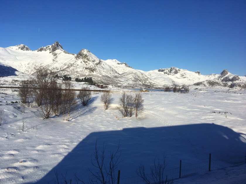 The islands are now linked by bridges, some of which are spectacular, before the bus had to get on and off ferries making the journey much longer. The road wound its way high up through mountain passes which were covered in snow.
