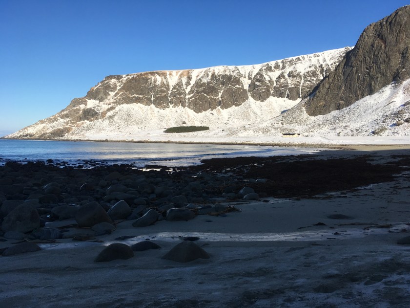 There are no trains on the Lofoten islands, there is only one major road that leads north onto the mainland, there is an airport and there are many ferries. We arrived by ferry from the south and didn’t want to retrace our steps so we opted for the bus.