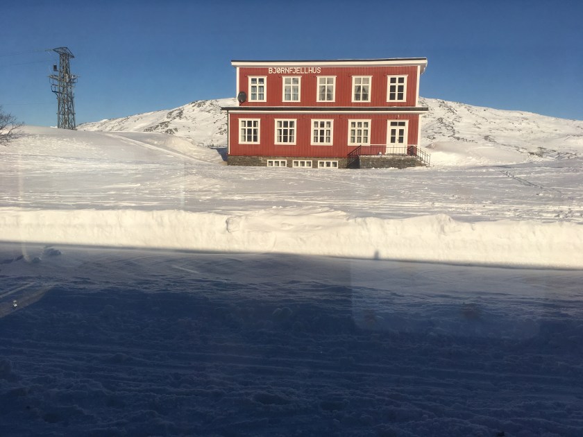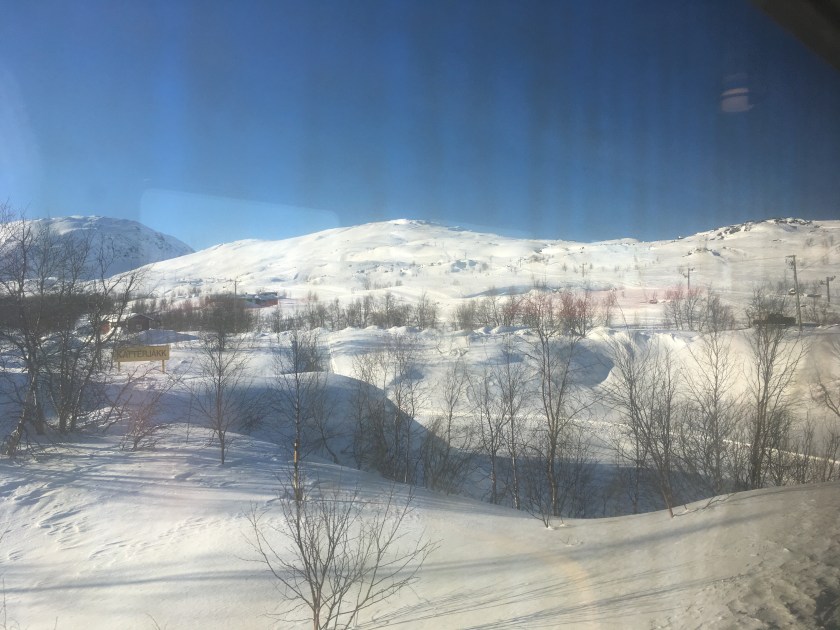 All the vehicles in Norway have to fit special tyres during the winter period, it is compulsory, so the bus made it’s way through the snowy landscape with ease.
